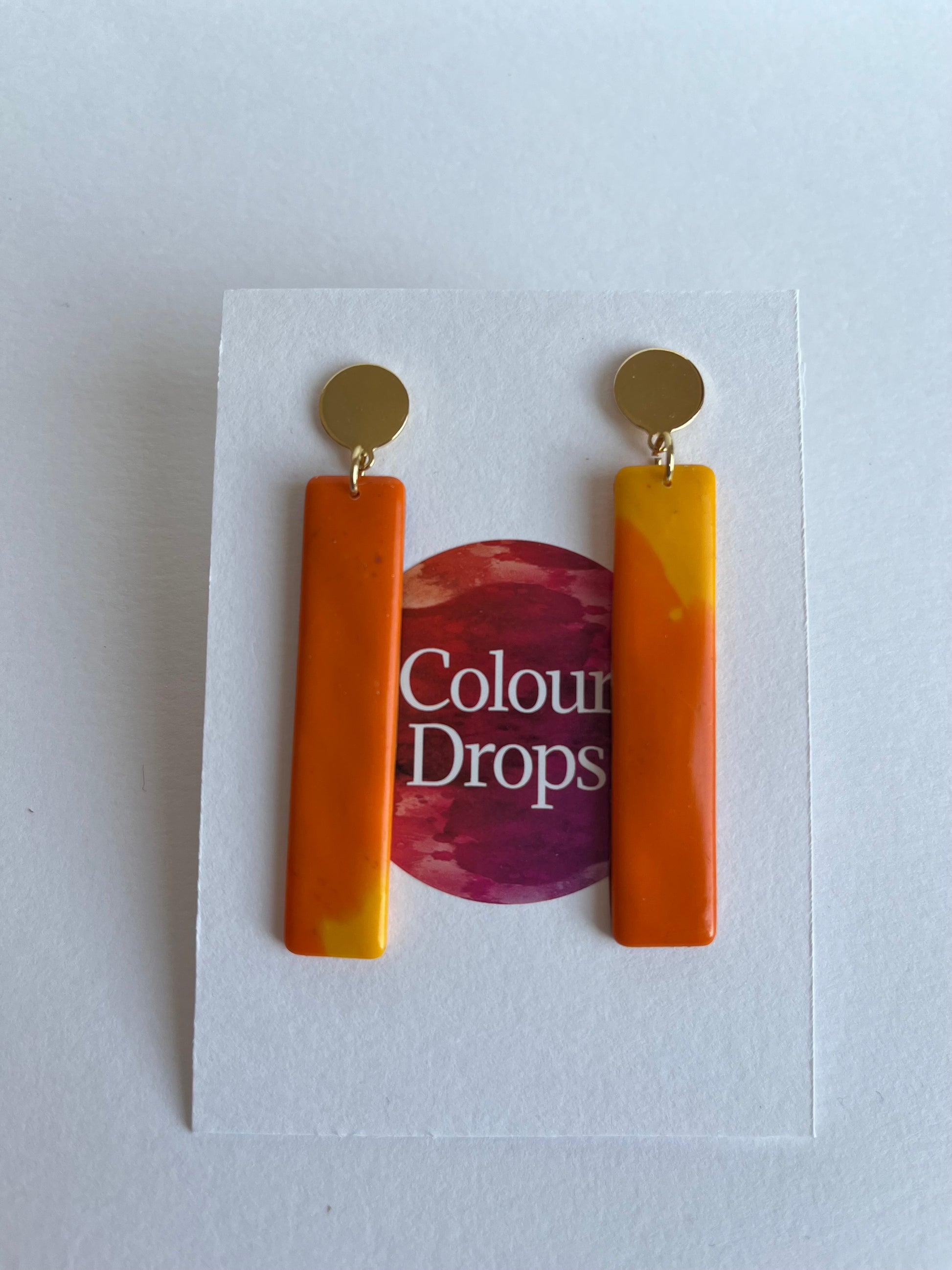 Striking tangerine / yellow earrings with gold plated stainless steel findings