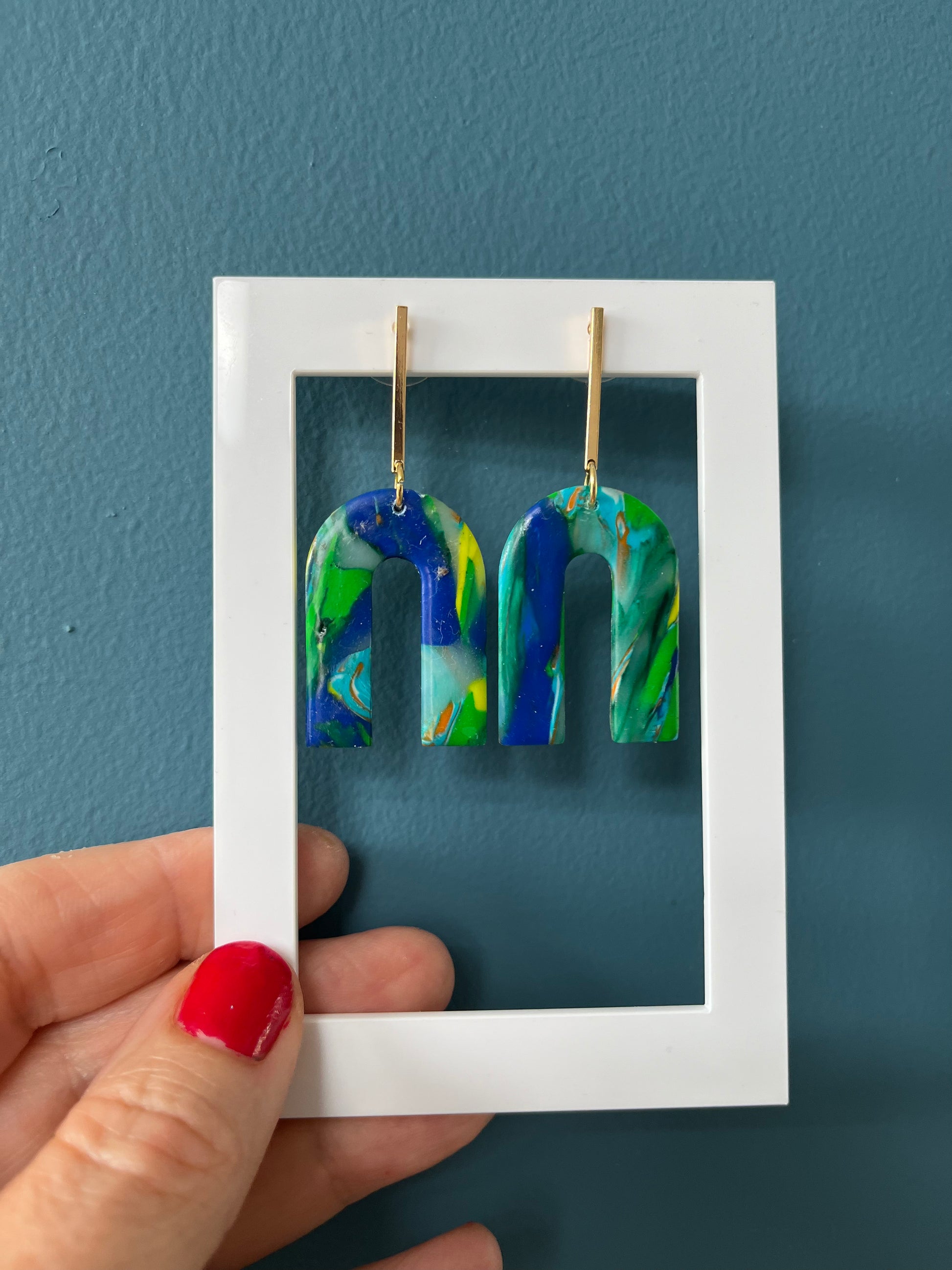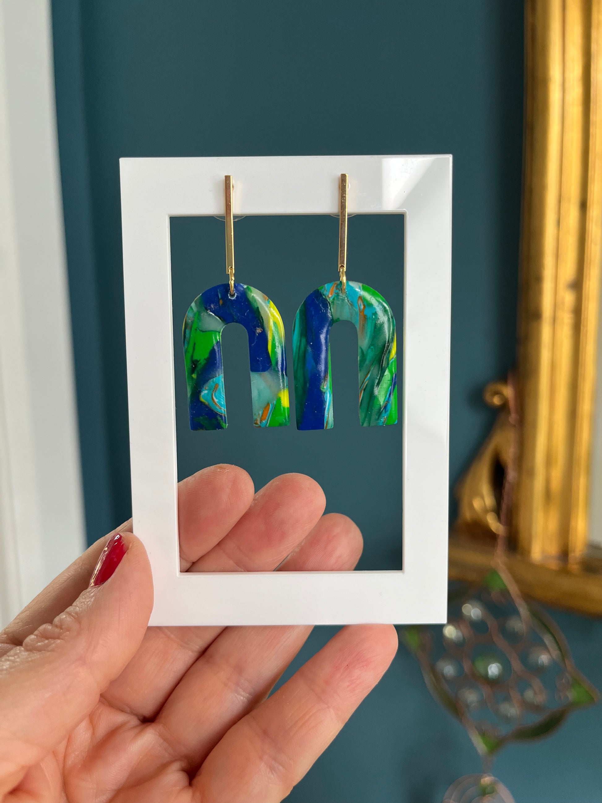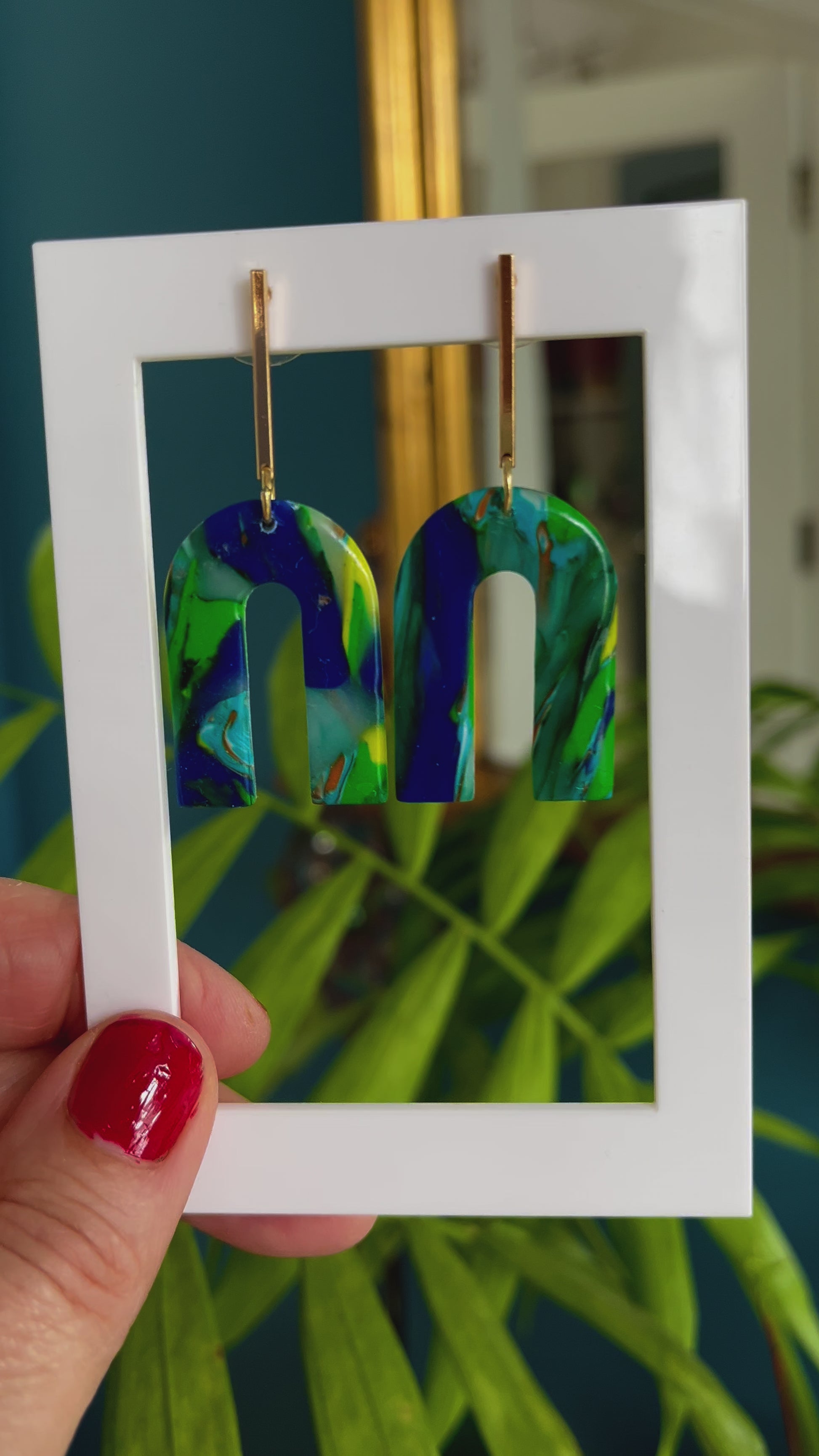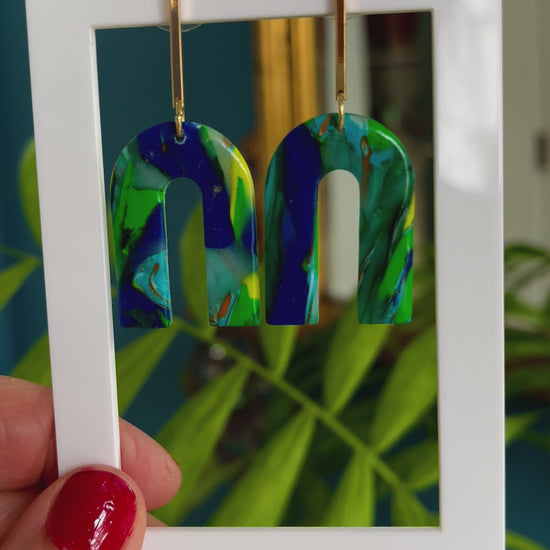 Beautiful vibrant blue green colourway in an eye catching statement earrings