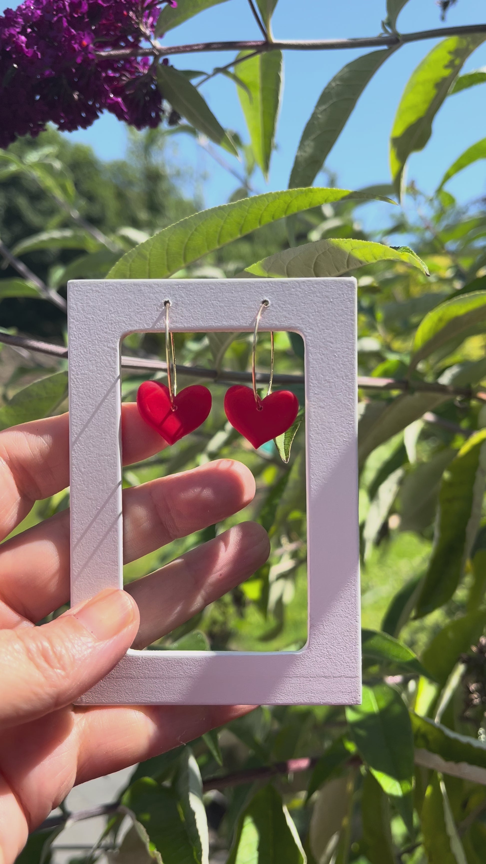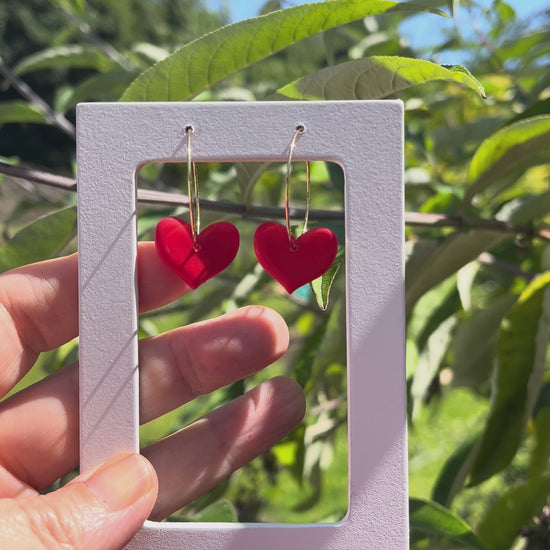 Adorable little red heart hoops . Fiery red with a matte finish on gold plated hoops