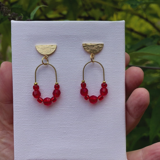 Brass and stainless steel combined with striking red beads . Understated and light to wear .